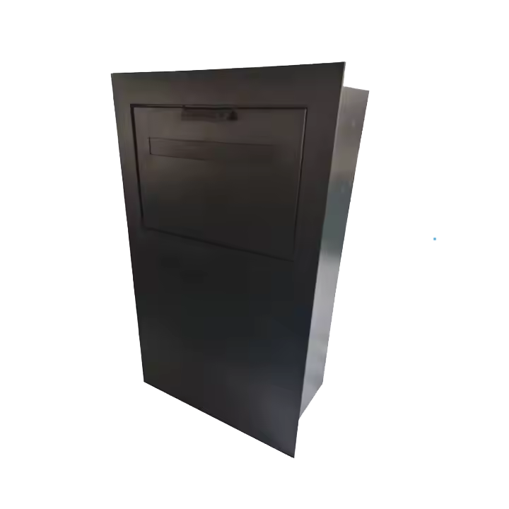 A compact, half-front PARCEL AND MAIL BOX designed for low-profile setups.